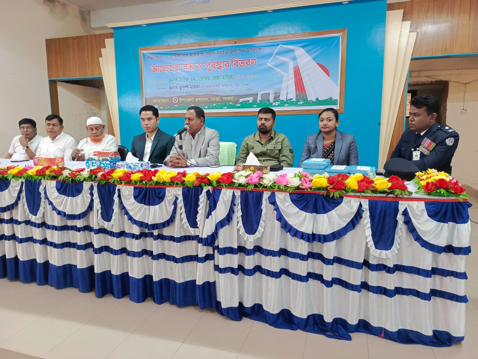 তিনি বলেন, বিশ্বের সঙ্গে তালমিলিয়ে চলে হলে আমাদের অনেক কিছু সেক্রিফাইস করতে হয়। এখন নির্বাচন শেষ হয়েছে। দেশের উন্নয়নে ও জনগণের কল্যানে আমাদের সকলকে মিলেমিশে কাঁধে কাঁধ মিলিযে দেশের সার্থে কাজ করতে হবে। ২১ ফেব্রুয়ারি শনিবার বেলা সাড়ে ১১টায় বেড়া উপজেলা পরিষদ অডিটোরিয়ামে শহীদ দিবস ও আন্তর্জাতিক মাতৃভাষা দিবস-২০২৬ আয়োজিত আলোচনা সভা ও পুরস্কার বিতরন অনুষ্ঠানে সভাপতিত্ব করেন উপজেলা নির্বাহী অফিসার রুনাল্ট চাকমা।