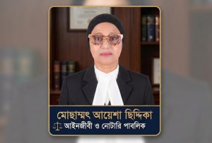 সিলেট তৃণমূল থেকে উঠে আসা জাতীয়তাবাদী আদর্শের লড়াকু সৈনিক, বিশিষ্ট আইনজীবী ও নোটারি পাবলিক মোছাম্মৎ আয়েশা ছিদ্দিকা।