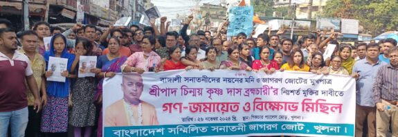 খুলনায় চিন্ময় প্রভুর মুক্তির দাবীতে বিক্ষোভ